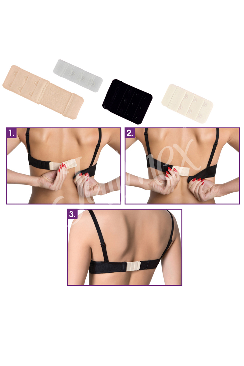BH-Extender mit drei Haken in weiß erhältlich. Einfache und schnelle Möglichkeit, den Umfang Ihres BH zu erweitern, falls er zu eng ist. Für alle BHs mit drei Haken geeignet. In Einheitsgröße