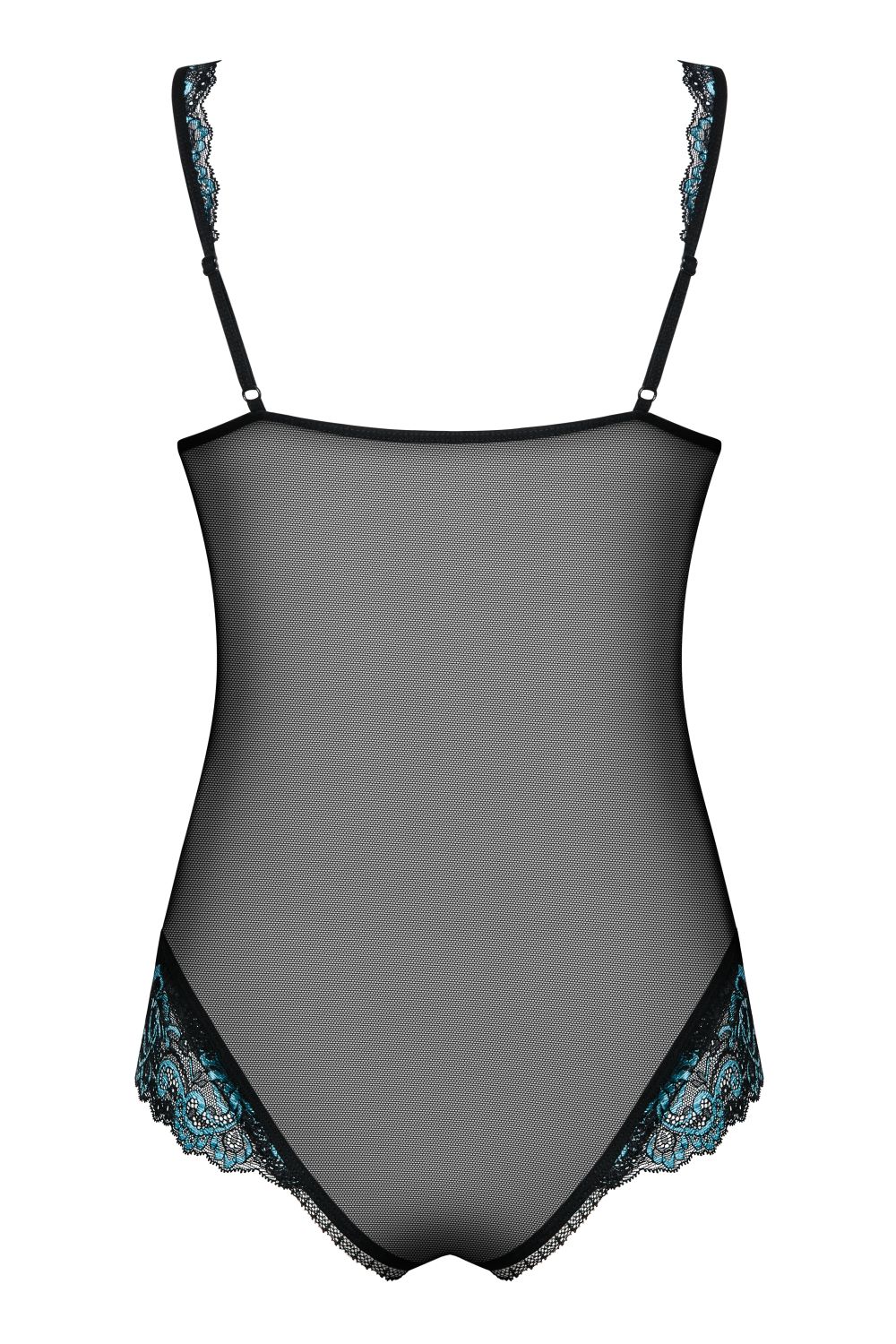 Ouvert-Body in schwarz-türkis aus komfortablem Netzmaterial mit beidseitiger Spitze. Mit... mehr