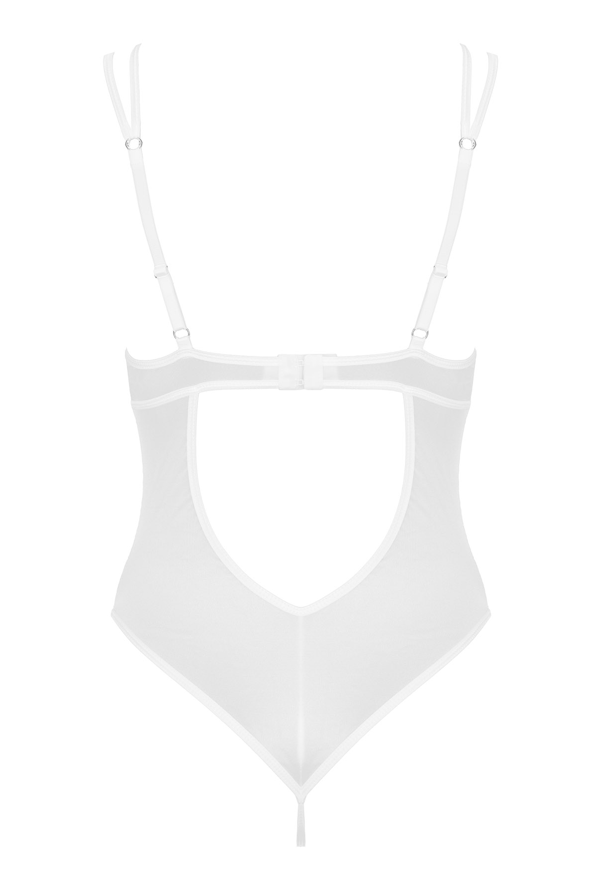 Rückenfreier Body mit transparenter Spitze an der Vorderseite. Die Doppelriemen und der Rückenverschluss sind individuell einstellbar.